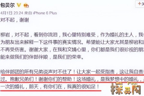 在柳岩包贝尔婚礼事件发生之后,由于激起了猛烈的舆论风波,甚至盖过了婚礼的风头,而第一个站出来发声的却是受害人柳岩,她哭着道歉说这件事把自己弄得里外不是人,让包贝尔夫妻尴尬了,伴郎团却无人发声,四天后包贝尔才站出来发文道歉,但话里话外都在维护兄弟团。
