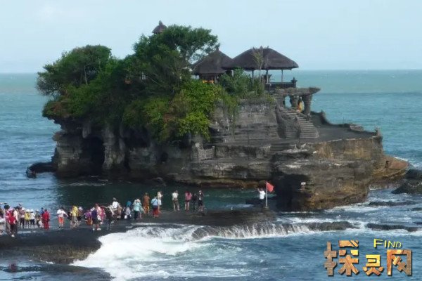海神庙是巴厘岛中西部海岸的一座寺庙,它位于塔巴南,建设于经海水冲刷而形成的离岸大岩石上,每当涨潮的时候,与其连接的通道就被会海水淹没,导致游客无法通行,要等到退潮后才能进入庙宇参观。