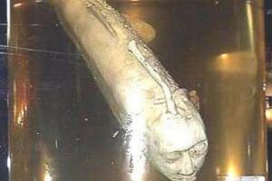 另外在韩国一哥居民家中饲养着两条这样人面鱼,其身长为80厘米,躯干周长为50厘米,在鱼的双眼中突出骨骼,跟人的鼻子十分相似,让人第一时间联想到是脸。据饲养主人说到,这鱼是在1986年受精出生的,之后逐渐成长为成鱼,最后就变成这个样子。
