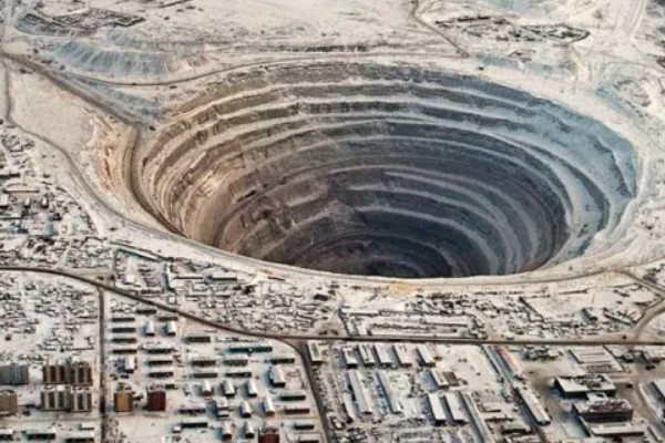 和平钻石矿也叫作米尔内钻石矿,是在1955年被一位年轻的地理学家意外发现的钻石资源,位于俄罗斯东西伯利亚地区,整个钻石矿的深度是525米,入口的直径是1200米,约等于161层楼的高度,和平钻石矿也是世界上第二大通过人为挖掘产生的巨坑。